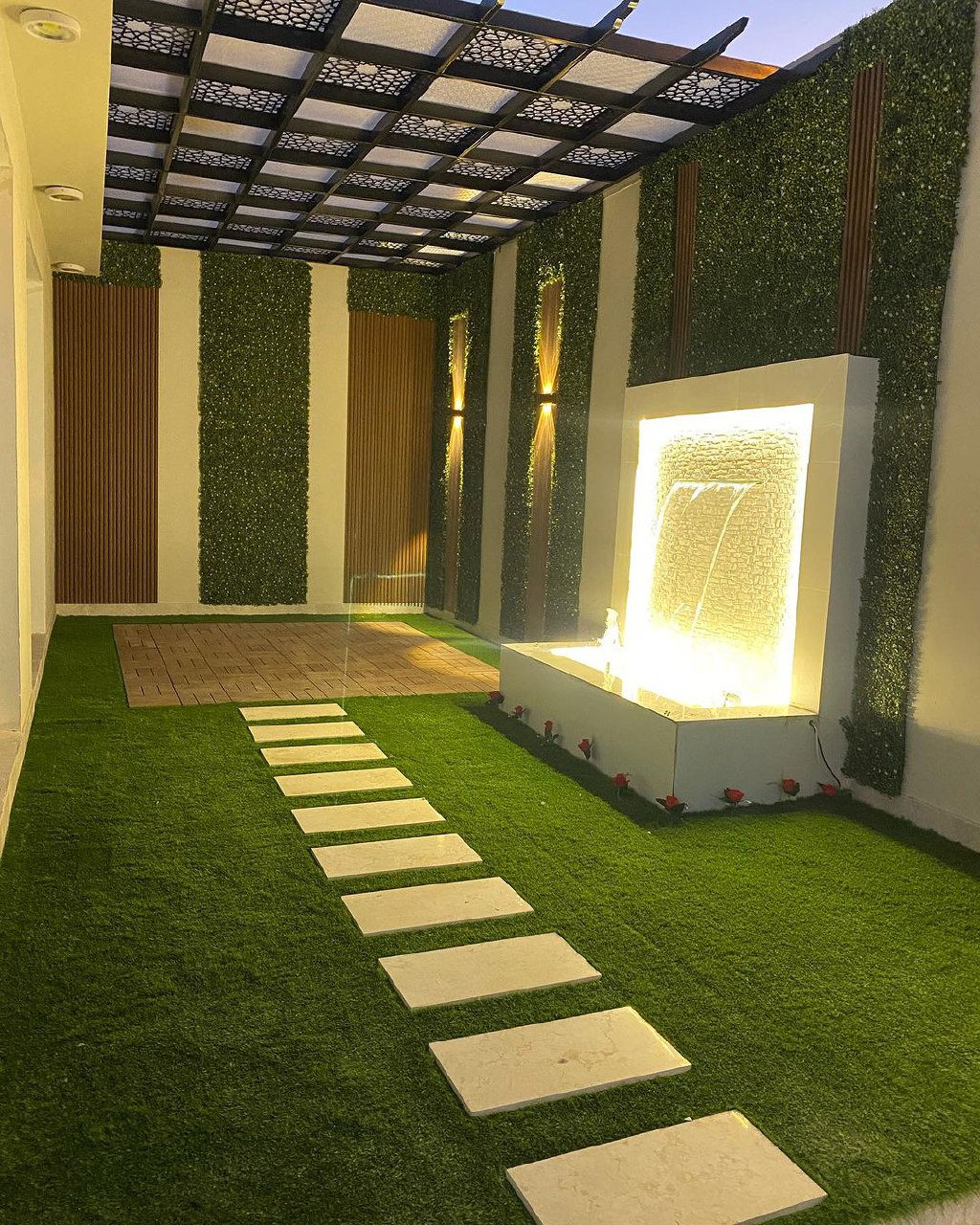 نحن نرتقي بمستوى تنسيق حدائق الرياض عبر تصميم شلالات ونوافير جدارية تسمح بسماع خرير الماء وتوفر الهدوء في آن واحد. يتم تنفيذ هذه الأعمال بلمسات فنية تراعي توزيع الإضاءة المائية وتناسق حركة المياه لتكون مكاناً مثالياً لاستقبال الضيوف في أرقى أحياء العاصمة ضمن خدمات تنسيق حدائق الرياض. التزامنا في تنسيق حدائق الرياض هو تقديم حلول مبتكرة للزوايا المائية التي تعتمد على البساطة والفخامة، حيث نحرص على أن يكون الشلال جزءاً لا يتجزأ من روح المكان، مما يوفر لك جلسة هادئة ومميزة تليق بمستوى منزلك بلمسة إتقان.